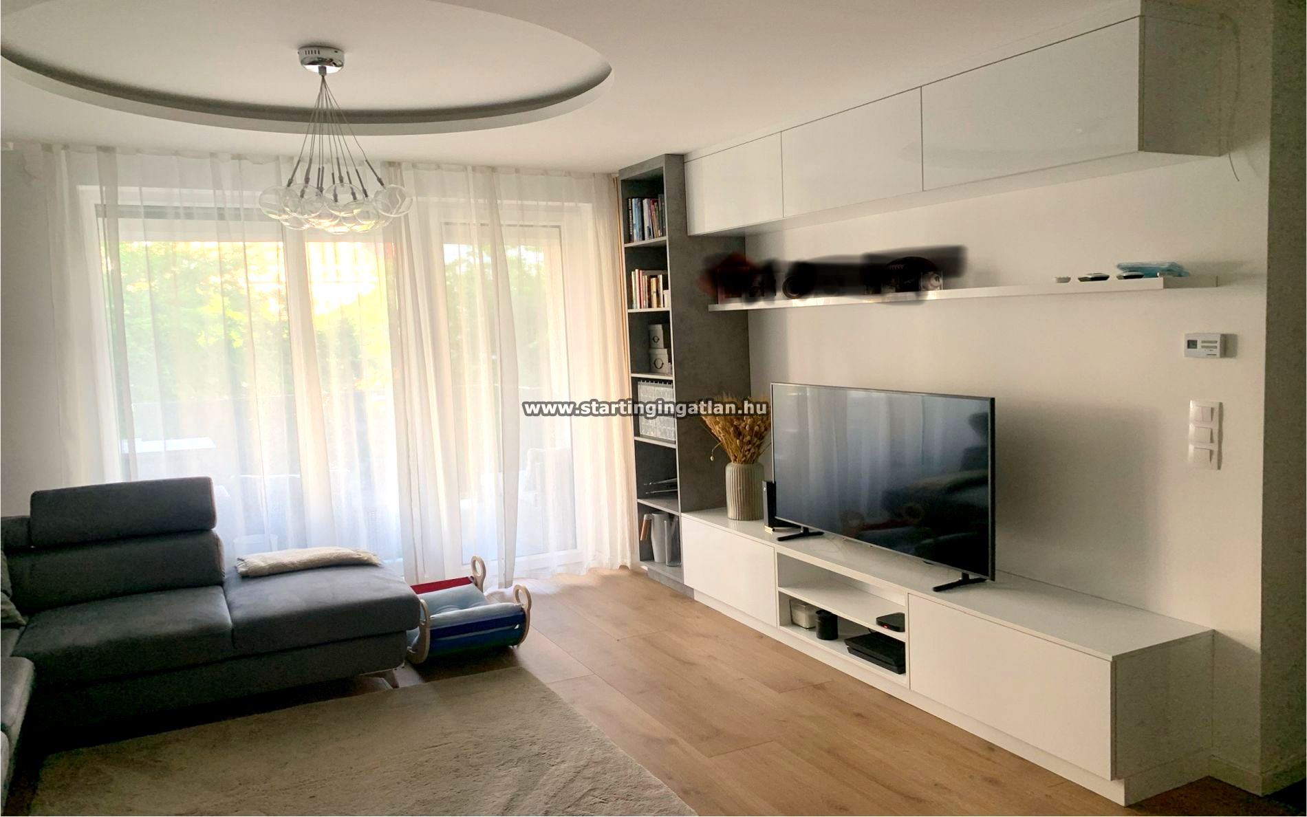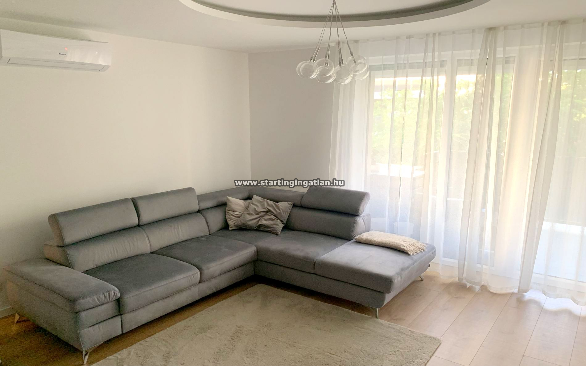 A lakás világos, napfényes terekkel rendelkezik, a nagy ablakoknak köszönhetően egész nap kellemes természetes fény tölti meg a helyiségeket.